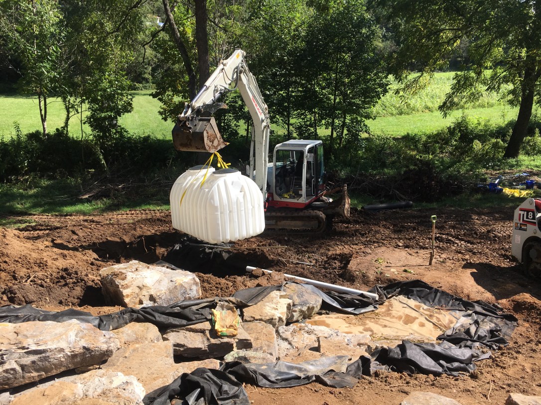 After the water in the system flows through the Filtrific filter box, in drops into the vanishing basin. This can be man made or you can use a pre-fabricated cistern.