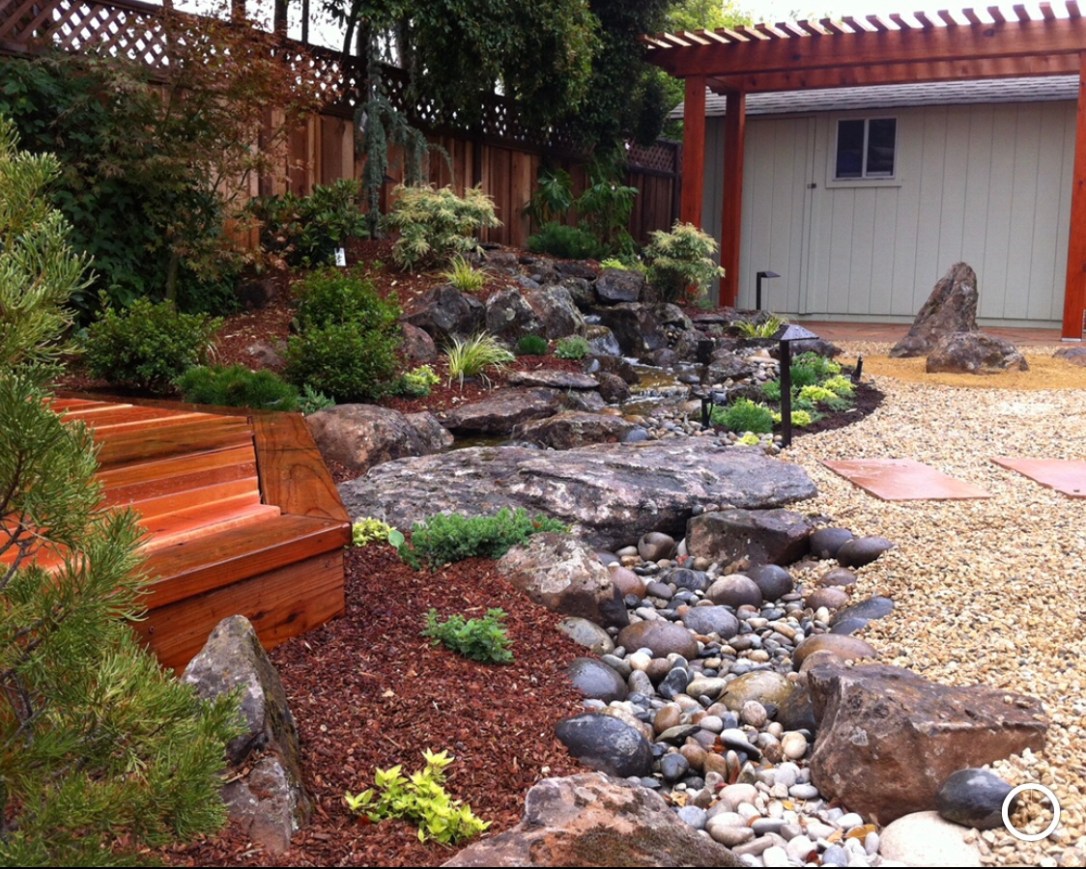 We often use bridges in our pondless waterfall projects both functionally and as features. The bridge is a symbol of healing and connection. In some of our features we use stone slabs, in some wood or concrete.