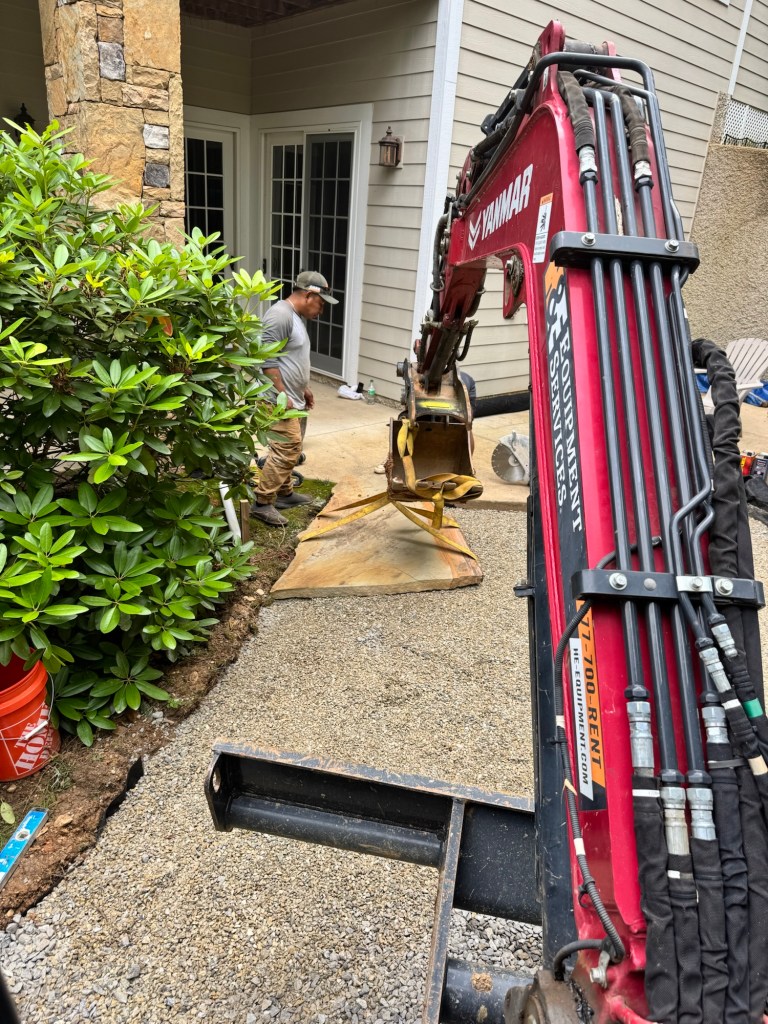 Just wrapping up this dry laid flagstone patio and Pondless waterfall.