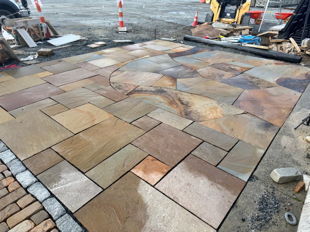 We will be including multiple different types of stone in this custom dry laid patio entryway.