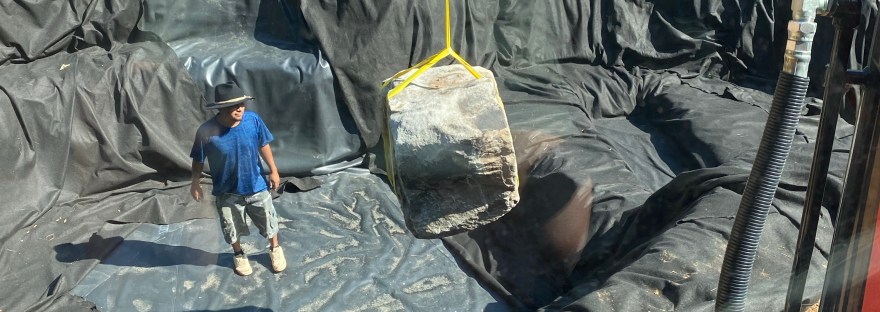 We started off by excavating the pond area and lining it with a 45 mil EPDM rubber liner. Then we set boulders along the pond wall, leaving planting pockets for aquatic plants that will help keep the water clear and healthy.