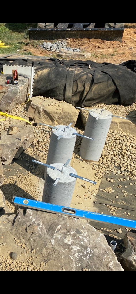 We also added a fun feature to this pond. Floating Steps! They are actually not ‘floating’ but will look like it when the pond is full. We set flagstone steppingstones on top of concrete pillars to create this awesome feature.