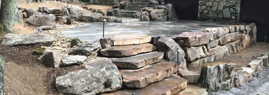 We built a series of dry stacked stone retaining walls for our client in Asheville recently. In the landscape design process we decided to add a really cool feature into the walls. A little fairy grotto was the idea. Our clients came up with the idea originally. I have seen similar ideas in other walls, but have yet had the opportunity to install one. We thought it was a great idea, for a small statue or maybe a spot for a candle to brighten the feature at night.