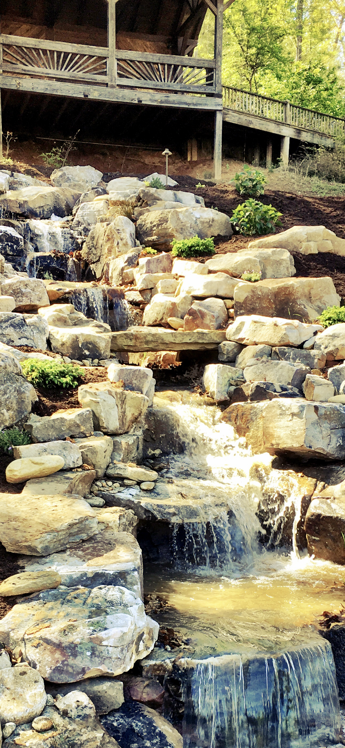 We were happy to help and recommended installing a Pondless waterfall instead of a pond and waterfall system. The Pondless feature would be easier to maintain for our clients.