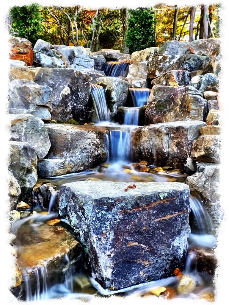 We added some low voltage aquatic lighting to this feature. The next step will be to add plants and mulch. The plants are always the framework for the waterfall.