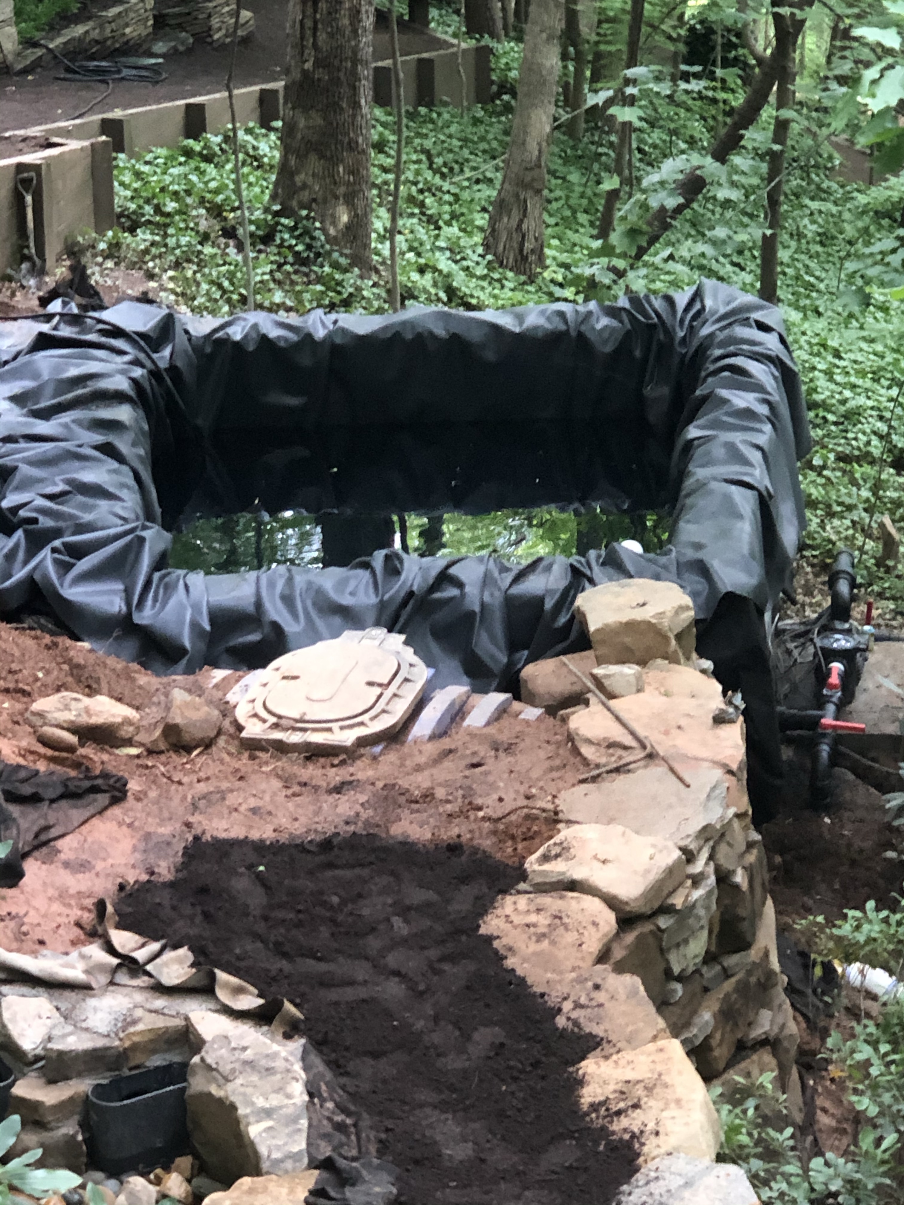 Our project the last couple weeks has been working on the rebuild of a failed pond and waterfall in Asheville, near the famous Biltmore estate.